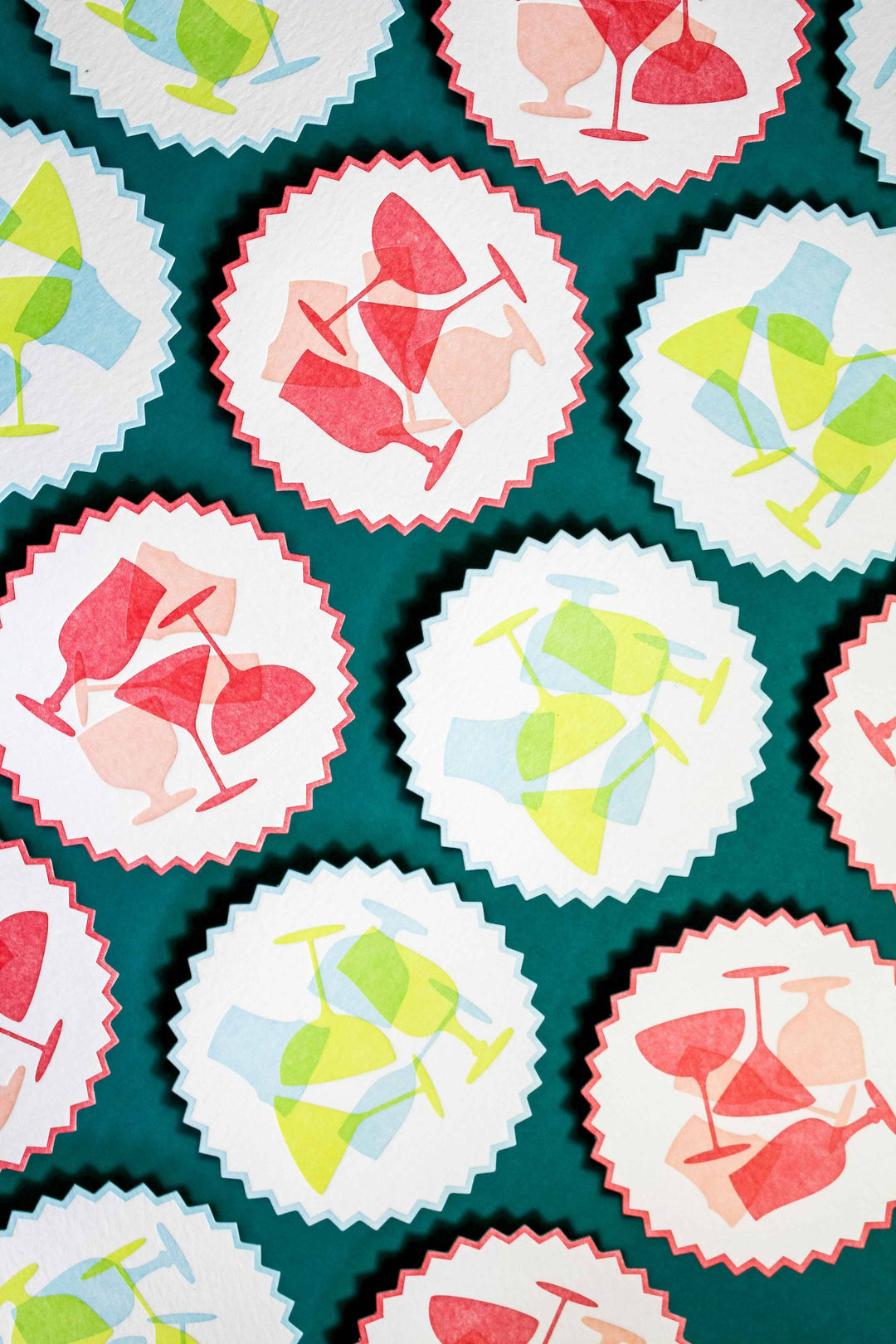 Vintage-Inspired Letterpress Coaster Set - Colorful Glasses